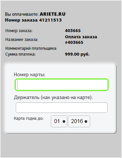 Система перенаправит Вас на защищенную страницу Банка для ввода реквизитов карты.