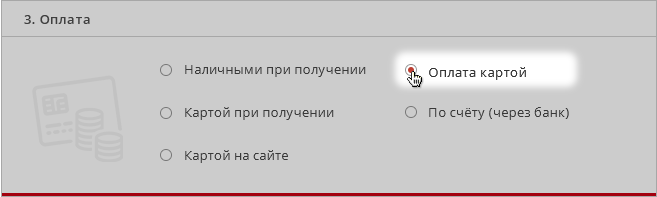 При оформлении заказа в нашем магазине, для выбора способа оплаты с помощью карты Вам необходимо нажать кнопку "Оплата картой" в Корзине.